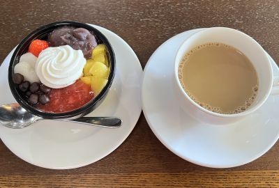 そしてお楽しみのデザート!本当に目はいろいろあれもこれも食べたがっているのですが、あんみつを一つだけにしておきました
